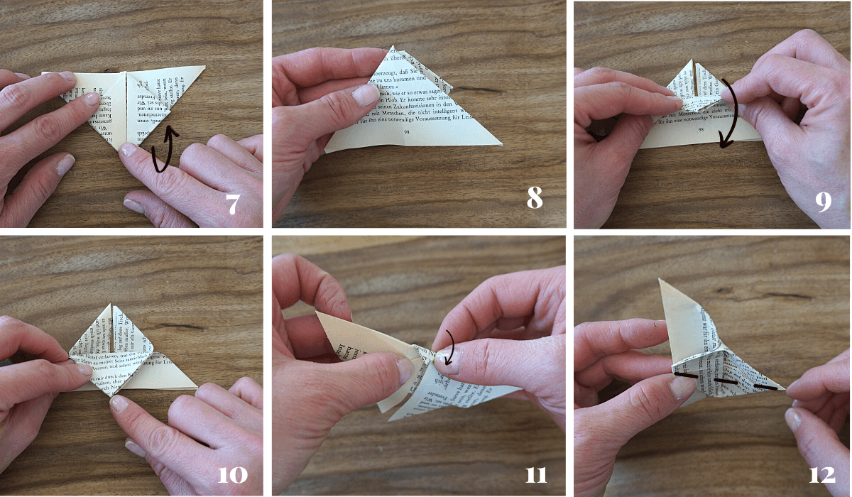 Jetzt falte die jeweils beiden äußeren ecken zur mitte hin.